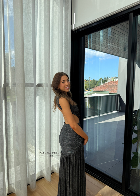Lurex Sleeveless Cut-Out Gown - Black