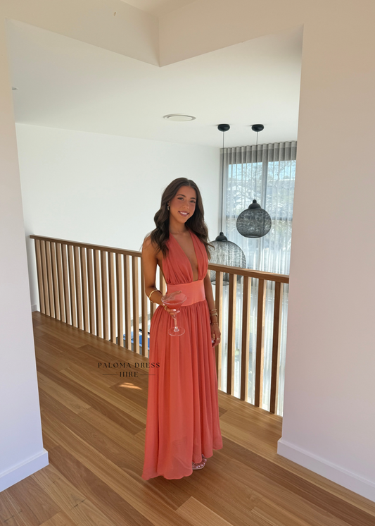 Arced Palm Dress- Grapefruit
